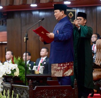 “Di hadapan majelis yang terhormat ini, di hadapan seluruh rakyat Indonesia, dan yang terpenting di hadapan Tuhan Yang Maha Kuasa Allah SWT, saya Prabowo Subianto dan saudara Gibran Rakabuming Raka telah mengucapkan sumpah untuk mempertahankan Undang-Undang Dasar kita, untuk menjalankan semua undang-undang dan peraturan yang berlaku, untuk berbakti pada negara dan bangsa. Sumpah tersebut akan kami jalankan dengan sebaik-baiknya, dengan penuh rasa tanggung jawab, dan dengan semua kekuatan yang ada pada jiwa dan raga kami,” ujar Presiden Prabowo.
